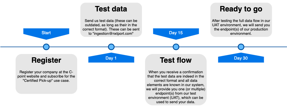 The first step in becoming a Certified Pick up data provider, is to follow How to register for Certified Pick up?